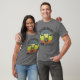 My 11 yo wore adult XL (5’7” 165#). The 8yo is small framed. She wore adult small and tied it in the back. Grandma wore adult large with long sleeve shirt underneath. Tall girl adult medium. Dark haired male adult large. Good quality dark Heather gray, Gildan brand shirt. -it was next up from basic choice and cost about $20 per shirt. Not too thick or thin. Washed and dried well, no major shrinkage. Not see-through. Can wear a bra under it fine. Screen print is just as shown and well done, front and back.