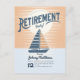 Set against a sunset backdrop, this invitation postcard beckons you to embark on a journey into retirement. A sailboat glides across tranquil waters, symbolizing the adventure that lies ahead. Flip over to RSVP info and secure your spot on this memorable voyage. Let the celebration begin!