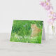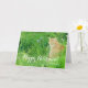A happy retirement card with a ginger cat sleeping in a meadow surrounded by long grass & bluebells.