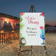 Celebrate your loved one’s retirement with a tropical-themed party using our stunning watercolor party sign. Featuring Hawaiian flowers, a coconut, and a cocktail against a light background, the design bursts with vibrant energy. "Let’s Party" in elegant script sets the festive tone. Easily customize every detail in a classic serif font to create the perfect party sign. Start planning an unforgettable retirement bash today – order your personalized party sign now!