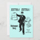 Extra! Extra! Spread the news that there is going to be a retirement party! Vintage drawing of a newspaper seller spreading the news about a retirement. Fun retirement party invitation to send to your friends.