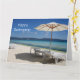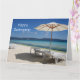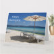 Photographic card of a beach umbrella and lounge seats - perfect for holidays, farewells & retirements - customize front & inside message. Large size perfect for office farewells.