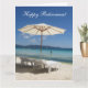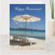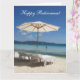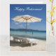 Photographic card of a beach umbrella and lounge seats - perfect for holidays, farewells & retirements - customize front & inside message.