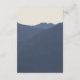 This retreat to the mountains wedding details card is perfect for a modern wedding. The design features a serene blue watercolor mountain range with a forest of evergreen trees in the foreground.