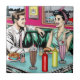 Retro pop art comic book style tile. Cute 1950's era couple sitting in a diner with milkshakes, fries and cheeseburgers on a date. Colors used are teal, pink, red, black and yellow. Old-fashioned nostalgia. This picture is hand drawn by myself.
