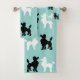 Retro 1950's Cute White & Black Poodles on Aqua Bath Towel Set