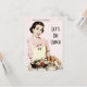 Invitations featuring a vintage 1950s illustration of a woman carrying a tray of food and drinks. Customize them with your own text. Retro cool!