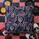 Bring the sock-hop energy straight into your home with this vibrant retro 1950s rock 'n' roll throw pillow! Featuring a bold repeating pattern on a deep black background, it explodes with glowing neon pink, electric blue, and vibrant purple silhouettes of poodle-skirted dancers, greaser guys in leather jackets, jukeboxes, milkshakes, burgers, classic cars, and iconic neon diner signs that read “DINER,” “BURGERS,” “ROCK ‘N’ ROLL JUKEBOX,” and “OPEN 24 HRS.” Stars, musical notes, and cherry-topped shakes complete the nostalgic vibe.