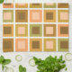 A simple mid century modern inspired abstract simple pattern with tiled squares in rows and columns. A great gift idea for anyone who loves minimalist 20th century art. This one has neutral earth tones in light browns, muted greens and soft oranges.