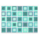 A simple mid century modern inspired abstract simple pattern with tiled squares in rows and columns. A great gift idea for anyone who loves minimalist 20th century art. This one has shades of blue green, such as turquoise, aquamarine, teal, and ocean green.