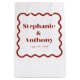 Give your wedding gifts a vintage touch with this Retro 1950s Wavy Edge Dark Red gift bag. The crisp white background is framed by a bold dark red wavy border, capturing the timeless elegance of the 1950s. The bride and groom’s names and wedding date are beautifully displayed in a coordinating dark red font, adding a personal and sophisticated detail. Perfect for bridesmaids, wedding favors, or gift presentations, this retro-inspired gift bag combines both style and function, making your special day even more memorable.