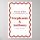 Make a bold and elegant statement at your wedding with this Retro 1950s Wavy Edge Dark Red poster design. The crisp white background is beautifully framed by a bold dark red wavy border, capturing the timeless charm of the 1950s. The bride and groom’s names and wedding date are elegantly displayed in a coordinating dark red font, adding a personal and sophisticated touch. Perfect for welcome signs, seating charts, or decorative displays, this vintage-inspired design brings a classic and stylish element to your wedding décor.