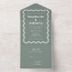 Retro 1950s Wavy Edge Sage Green Wedding All In One Invitation
