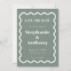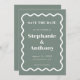 Retro 1950s Wavy Edge Sage Green Wedding Save The Date