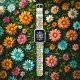 Flower pattern done in a 1960's mod style of bright colors and stylized shapes.