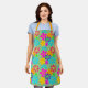 Great color and even though I ordered the kid size, it covers well enough to use during the holidays. I am not a big woman and prefer a shorter apron. I stand 5"6" and the length of the garment goes to mid-thigh. The tie straps fit well at my waist and even though there is no neck strap adjustment, the opening is plenty big enough. I am happy with the size and fit. I am sharing my apron with my 10 year old grandson, too! The color is vibrant and looks good, as shown on the website. The stitching looks strong and reinforced. Photographed is front side and back side of the apron, reinforced straps and coloring. My phone camera may not be the best at showing the details.