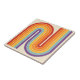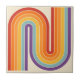 This artwork channels a retro graphic spirit, forming the letter‑like curve with parallel bands of red, orange, yellow, light blue, teal, and purple. The layered arcs flow in harmony, evoking the bold optimism of 1970s design. Set against a soft beige background, the vibrant rainbow palette stands out with clarity and rhythm. The composition balances simplicity and dynamism, creating a timeless visual that feels both nostalgic and modern.