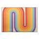 This artwork channels a retro graphic spirit, forming the letter‑like curve with parallel bands of red, orange, yellow, light blue, teal, and purple. The layered arcs flow in harmony, evoking the bold optimism of 1970s design. Set against a soft beige background, the vibrant rainbow palette stands out with clarity and rhythm. The composition balances simplicity and dynamism, creating a timeless visual that feels both nostalgic and modern.