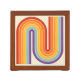 This artwork channels a retro graphic spirit, forming the letter‑like curve with parallel bands of red, orange, yellow, light blue, teal, and purple. The layered arcs flow in harmony, evoking the bold optimism of 1970s design. Set against a soft beige background, the vibrant rainbow palette stands out with clarity and rhythm. The composition balances simplicity and dynamism, creating a timeless visual that feels both nostalgic and modern.