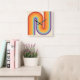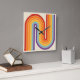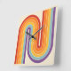 This artwork channels a retro graphic spirit, forming the letter‑like curve with parallel bands of red, orange, yellow, light blue, teal, and purple. The layered arcs flow in harmony, evoking the bold optimism of 1970s design. Set against a soft beige background, the vibrant rainbow palette stands out with clarity and rhythm. The composition balances simplicity and dynamism, creating a timeless visual that feels both nostalgic and modern.