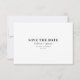 Minimal save the date card features bold 70s inspired typography. Personalize the back with your wedding details, including names, wedding date, location and website.