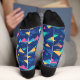 This fun Halloween socks are bright and colorful. The small print is crisp and shows the fun details. The softness of the socks feels nice on my feet and ankles. .