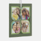 Stylish photo ornament in two tone green with retro pinwheel style photo collage. The photo template is set up for you to add 4 of your favorite photos, which are automatically displayed in the flower petal shapes. If you have any problem with picture placement, try cropping your photo to a square and re-uploading. If you wish to edit the colors you can, click "edit using design tool" and you can change the background color and the petal colors.