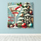 Retro 50s Cranberry Snowflake Christmas Martini Canvas Print