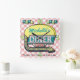 Retro 50's Diner Sign Pink Teal Personalized Name Square Wall Clock