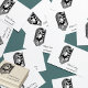 Promote your business with this beautiful, retro dressed woman on a rubber stamp! Print on cards or envelopes to brand your company! Customizable templates to suit your needs.