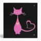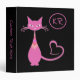Retro 50s Pink Kitty Cat Heart Tail Monogram 3 Ring Binder