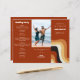This budget retro 70s tri-fold wedding program features wavy lines in tan, brown, and orange, reminiscent of the groovy 70s and hippie lifestyle. Funky vintage trifold program paper sheet with white script next to the abstract curvy lines. Groove along with this fun earth tone design.