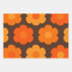Retro 70s Flowers Orange and Brown Floral Pattern Wrapping Paper Sheets