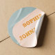 Retro 70s groovy dusty blue orange wedding classic round sticker