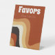 This groovy retro wedding favors pedestal sign features wavy lines in tan, brown, and orange, reminiscent of the 70s and hippie lifestyle. Bold vintage decor with funky white script next to the abstract curvy lines. Groove along with these fun earth tones. Please take a favor.