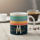 Retro 70s Navy Blue & Pink Stripes Custom Name Coffee Mug