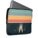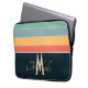 Retro 70s Navy Blue & Pink Stripes Custom Name Laptop Sleeve