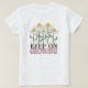 This t-shirt features a nostalgic 1970s-inspired graphic with whimsical "smiley face" daisies and a motivational "Keep On Growing" message, printed on both the front and back for a cohesive, stylish look. The aesthetic blends vintage retro-groovy vibes with a soft, feminine color palette of cream, sage green, and muted pink, making it a versatile piece for a casual, layered outfit. It is designed for students, nature lovers, or anyone who identifies with a cottagecore-meets-retro aesthetic. Perfect for a sunny day out at the park, a casual coffee date, or as a cozy, expressive gift for a friend who appreciates positive affirmations and botanical art.