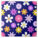 Retro 70s Style Flower Rpt Pattern on Dark Blue Ceramic Tile