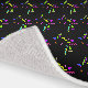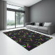 This stylish and colorful area rug features an 80s and 90s retro arcade theme. Geometric shapes in neon colors are printed across a black background. The bright neon arcade pattern reflects under a blacklight and makes an excellent addition to your home arcade or game room.