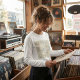 Embrace the cooler weather with this artistic womens long-sleeve tee featuring a nostalgic cassette tape pattern. The hand-drawn analog design paired with soft watercolor accents offers a creative layered look for music fans. This comfortable top captures a vintage 1980s aesthetic while providing the extra coverage of full-length sleeves. It is an ideal choice for outdoor concerts or casual weekend wear for those who appreciate retro indie style and classic musical heritage.