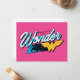 Wonder Woman | "Believe in Wonder" written in a retro 80's style graphic featuring the Wonder Woman logo and comic book pages embedded into the text and shapes.