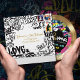 Yo, what up - let's break this hizzle down, fo'shizzle - Personalize this unique, retro, and off the hook 80s Hip Hop Graffiti square wedding invite envelope, created to match the 80's Hip Hop Photo Gold Record Album round shape wedding invitation in the suite, featuring black and white graffiti with white space for your guest address in the middle and post office bar code along the bottom on the front, and more graffiti on the back with a grunge brick paint splatter wall printed on the envelope liner! Easily customize the return name and address on the black back flap. ** Check out the matching gold record invitation, cassette tape RSVP card, enclosure cards, and more - scroll down to see the collection below. ♥ Custom design, matching product requests, and template questions are always welcome - click the "message" button or email directly: contact@figandlilyco.com. Design is lovingly created by Fig and Lily Studios ♥