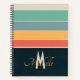 Retro 80s Navy Blue & Pink Stripe Pattern Monogram Notebook
