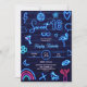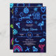 Retro 80s neon laser glow Sweet 16 navy blue brick Invitation