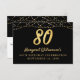 RSVP enclosure card to include with an 80 birthday party invitation featuring retro typography and string light in black and gold. ASSISTANCE: For help with design modification or personalization, transferring the design to another product or if you would like coordinating items, contact the designer BEFORE ORDERING via the Zazzle Chat MESSAGE tab or email makeitaboutyoustore@gmail.com.