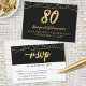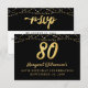 RSVP enclosure card to include with an 80 birthday party invitation featuring retro typography and string light in black and gold. ASSISTANCE: For help with design modification or personalization, transferring the design to another product or if you would like coordinating items, contact the designer BEFORE ORDERING via the Zazzle Chat MESSAGE tab or email makeitaboutyoustore@gmail.com.