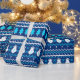 Retro 8 bit snowman snowflake Christmas tree pattern in white and blues.