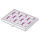 A unique and fun tennis themed business card holder, featuring a pattern of pink retro style tennis players celebrating a winning point. Makes a nice gift for a tennis player or coach, or get one for yourself to show off your love of the game!