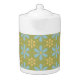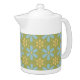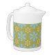 Retro Abstract Blue and Yellow Flowers Pattern Teapot